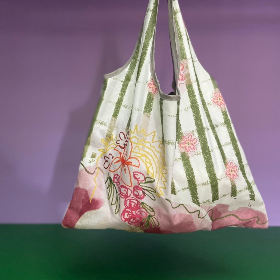Here’s your easy-to-carry fold-away grocery bag, your second-to-none option to get away from the disposable plastic bag, and your happy way to hold a lot of stuff